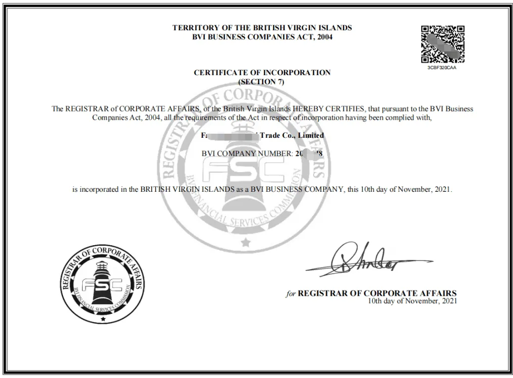 注冊BVI公司后所拿到的文件包含: