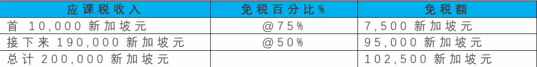新設立新加坡(稅)居民企業的應納稅所得額中,前10萬新元可免稅75%,10萬-20萬新元可免稅50%。該方案的其他內容保持不變。